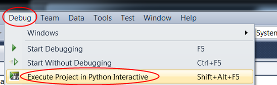 - To run the project in the Interactive Window, click [debug] -> [Execute Project in Python Interactive] as shown in this screen shot: