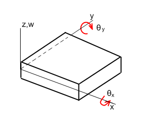 DisplacementFor bending of thin plate, we only consider the bending action resulted from forces normal to the plate. In-plane forces are not considered. In this case, the strains and stresses are uniquely described by the vertical displacement, w (assume the plate lies horizontally). w can be expressed with the help of Area Coordinates.
